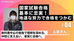 ーー今回は国家試験が終わってすぐの先輩にインタビューをさせていただきたいと思います。まず、国家試験の勉強でやるべき事とやるべきでないことを教えてください。